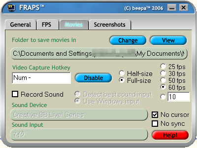 ご存知Fraps。最近最新版にアップグレードしました。以前より若干処理が軽くなったように思います。